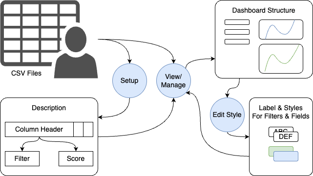 Setup Local Reports View/Manage Local Reports Edit Label & Style for ReportsThe relationship between source CSV files, CSV description, Dashboard, and Style can be described as the following: